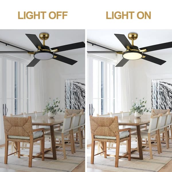 Siempre 52 in. Indoor French Gold Modern Ceiling Fan with Light, Wood Grain Blades, Remote, Quiet DC Motor, Timer