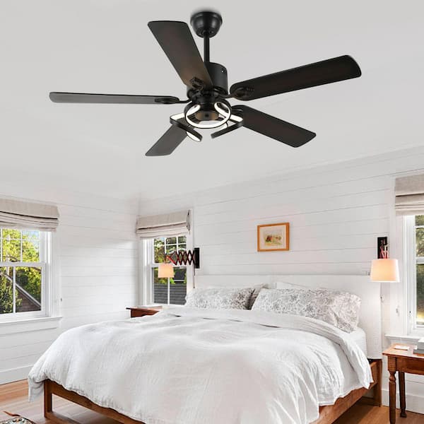 Tranquil 52 in. Smart Control Indoor Matte Balck 6-Speed Futuristic Modern Ceiling Fan with Light and Remote, Dimmable