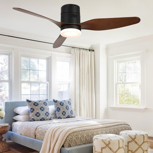 Trevina 46 in. Indoor Matte Black Modern Flush Mount Ceiling Fan with Lights, 6-Speed Dimmable Ceiling Fan with remote