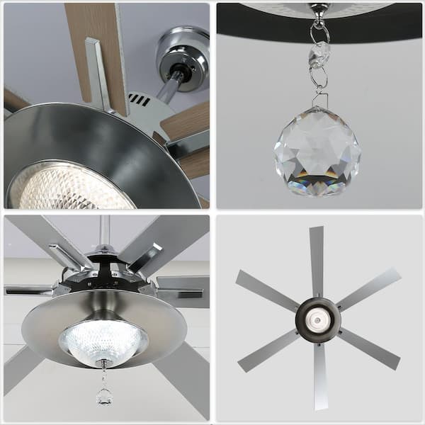 Websters 72 in. Indoor Futuristic 6-Speed Reversible Chrome Ceiling Fan with LED Lights and Remote, 3 Downrod Included