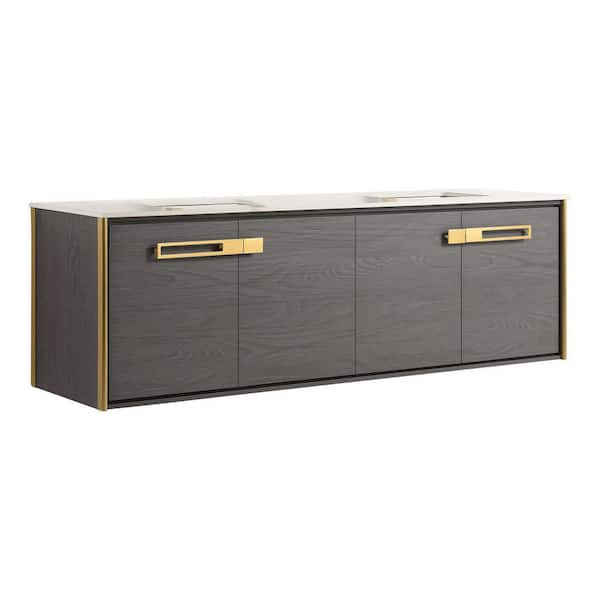 Oakville 72 in. W x 20 in. D x 23.25 in. H Wall Mounted Bathroom Vanity in Black with White Quartz Top