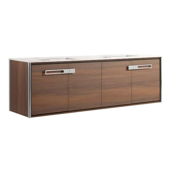 Oakville 72 in. W x 20 in. D x 23.25 in. H Wall Mounted Bathroom Vanity in Brown with White Quartz Top