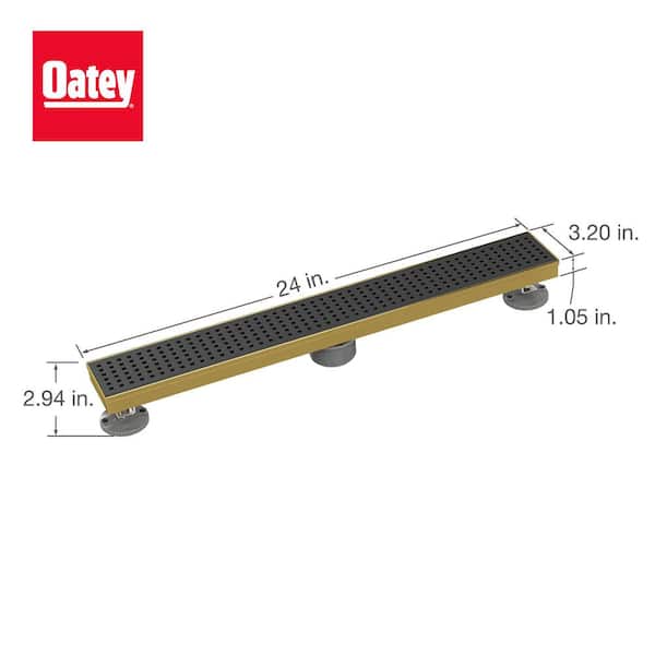 Designline Linear Shower Drain 24 in. x 3 in. Matte Black and Gold Stainless Steel Square Pattern Decorative Drain Cover