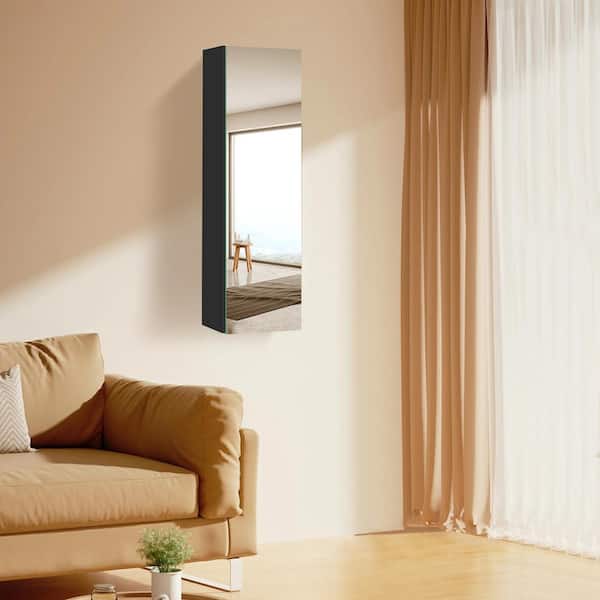 Obsi 10 in. W x 30 in. H Rectangular Black Aluminum Bathroom Surface Mount Medicine Cabinet w/ Mirror and Glass Shelves