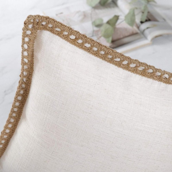 Off White Pack of 2 Christmas Decorative Throw Pillow Polyester Cover,Burlap Linen Trimmed, 18 in. x 18 in.