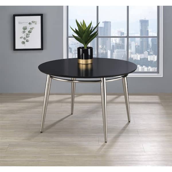 Brooklyn 30 in. Black/Brushed Nickel Round Wood Coffee Table