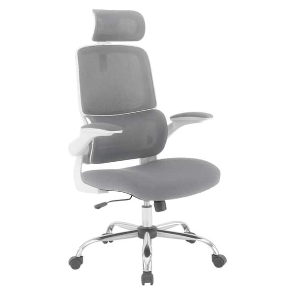 Fabric Seat Adjustable Height, Swivel, Ergonomic Executive Chair in Grey with Flip Arms