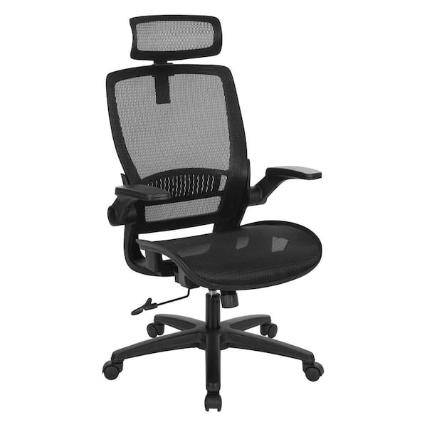 Fabric Seat and Mesh Back Adjustable Height Ergonomic Managers Chair in Black with Adjustable Arms and Headrest
