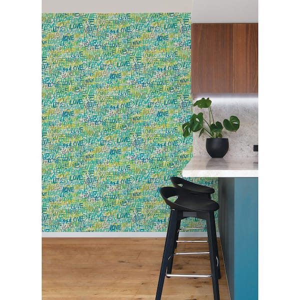 Blue Indio Teal Love Scribble Wallpaper