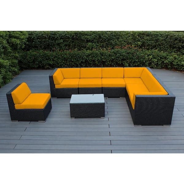 Black 8-Piece Wicker Patio Seating Set with Sunbrella Sunflower Yellow Cushions