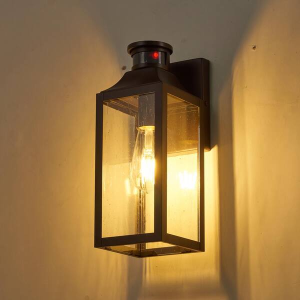 Oil Rubbed Bronze Motion Sensing Outdoor Wall Outlet Wall Sconce with No Bulbs Included Clear Seedy Shade (Pack of 2)