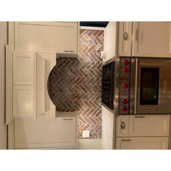 28 in. x 12.5 in. x 0.5 in. Brickwebb Independence Thin Brick Sheets - Herringbone (Box of 5 Sheets)