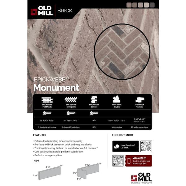 7.625 in. x 2.25 in. x 0.5 in. Monument Thin Brick Singles (Box of 50-Bricks)