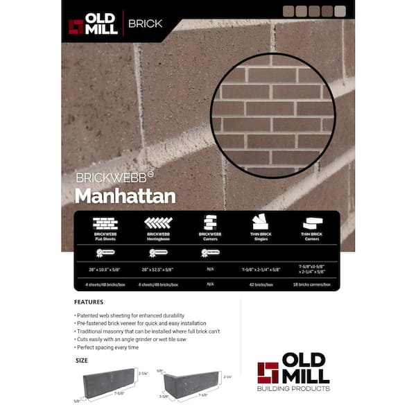 Manhattan 28 in. x 10.5. in. x 0.5 in. Clay Brickwebb Thin Brick Sheets-Flats (Box of 5 Sheets)
