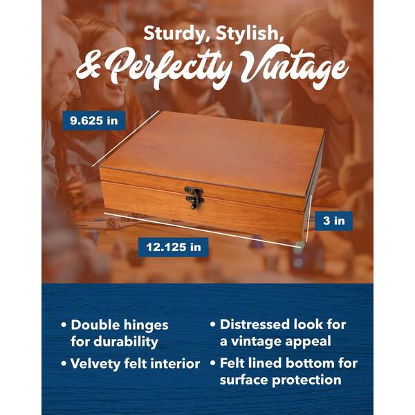 Old World Wooden Treasure Box with Brass Latch (Light Cherry Finish), 9.63 in. x 12.13 in. x 3 in.