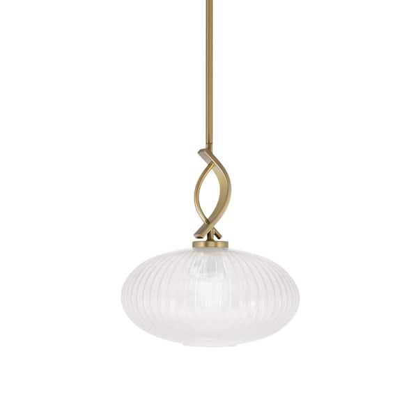 Olympia 100 W 1-Light New Age Brass Standard Mini Pendant Light with Glass Shade