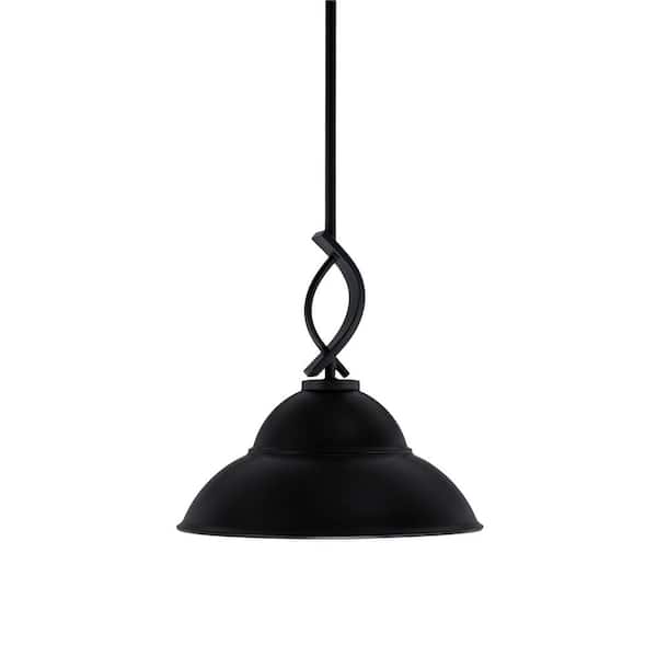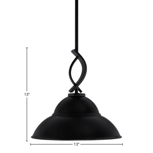 Olympia 100-Watt 1-Light Matte Black Shaded Pendant Light with 13 in. Matte Black Metal Shade, No bulb Included