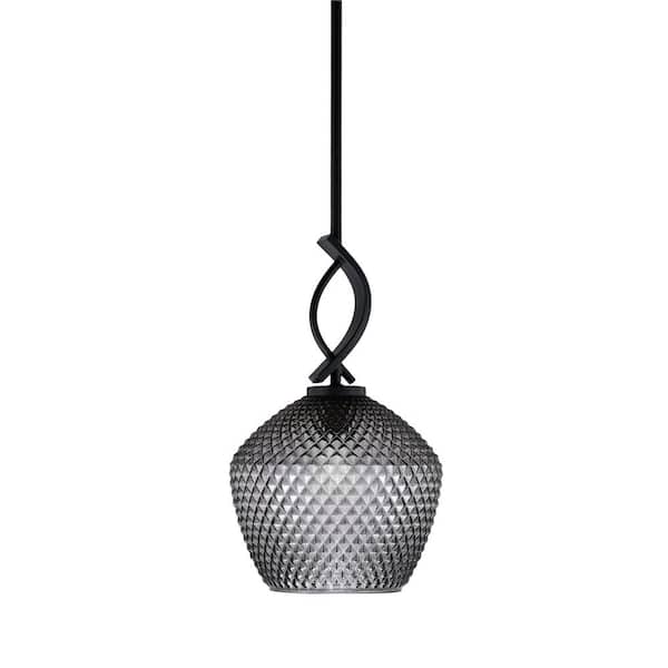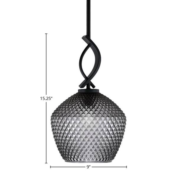 Olympia 100-Watt 1-Light Matte Black Shaded Pendant Light with 9 in. Smoke Textured Glass Shade, No Bulb Included