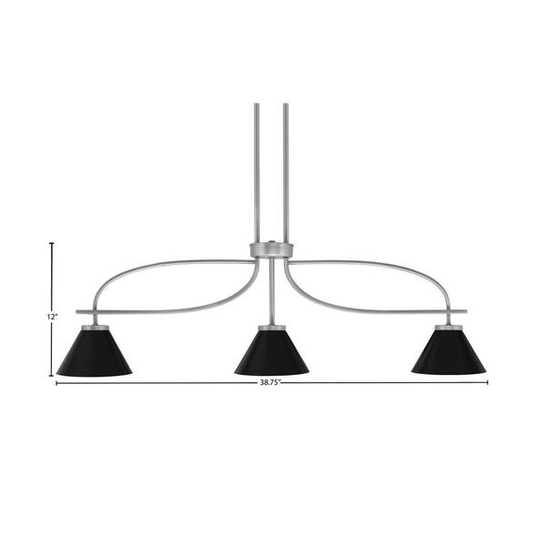 Olympia 12 in. 3-Light Chandelier Graphite Matte Black Metal Shade