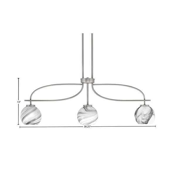 Olympia 13 in. 3-Light Chandelier Graphite Onyx Swirl Glass Shade