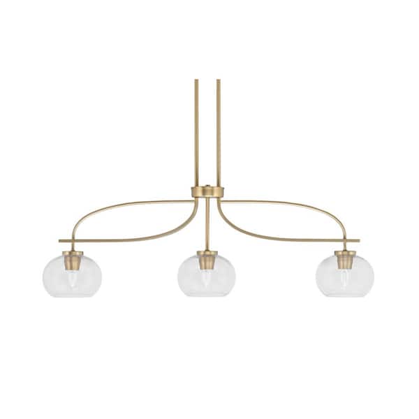 Olympia 13 in. 3-Light Chandelier New Age Brass Clear Bubble Glass Shade