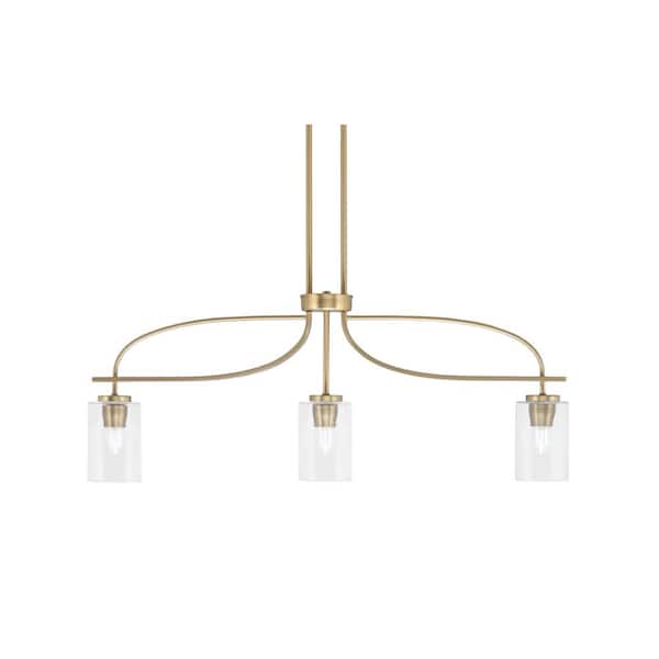 Olympia 14.25 in. 3-Light Chandelier New Age Brass Clear Bubble Glass Shade