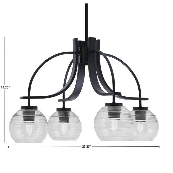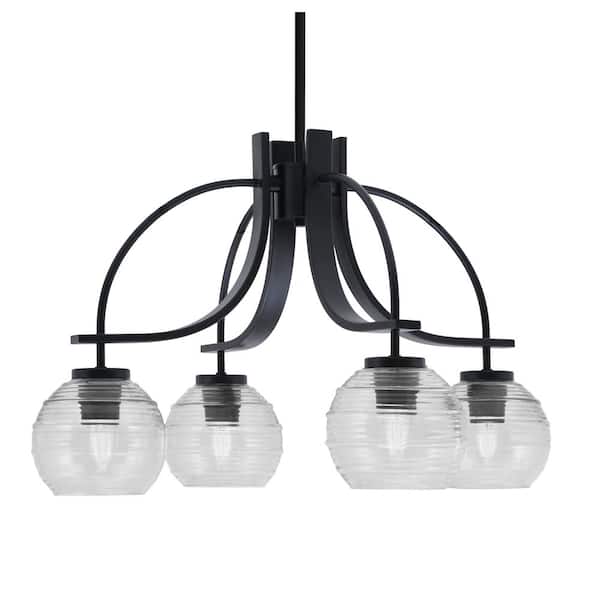 Olympia 14.75 in. 4-Light Matte Black Downlight Chandelier Clear Ribbed Glass Shade