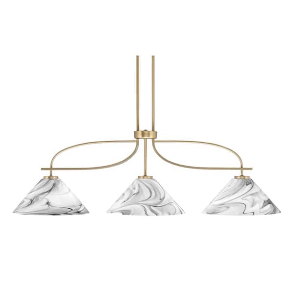Olympia 14 in. 3-Light Chandelier New Age Brass Onyx Swirl Glass Shade
