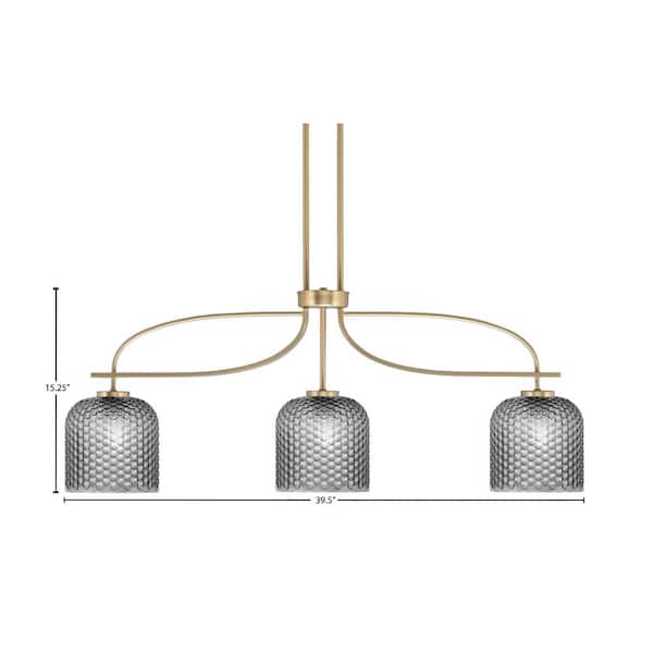 Olympia 15.25 3-Light Chandelier New Age Brass Smoke Textured Glass Shade
