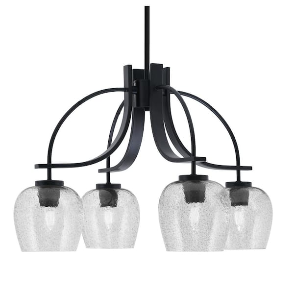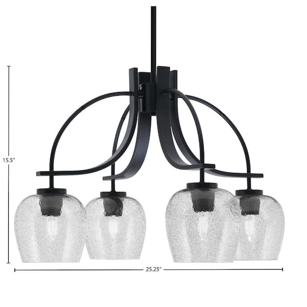 Olympia 15.5 in. 4-Light Matte Black Downlight Chandelier Smoke Bubble Glass Shade