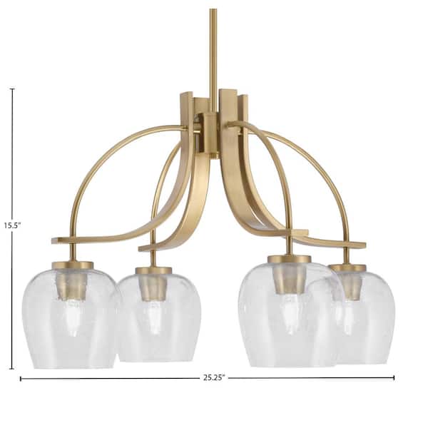 Olympia 15.5 in. 4-Light New Age Brass Downlight Chandelier Clear Bubble Glass Shade