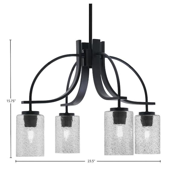 Olympia 15.75 in. 4-Light Matte Black Downlight Chandelier Smoke Bubble Glass Shade