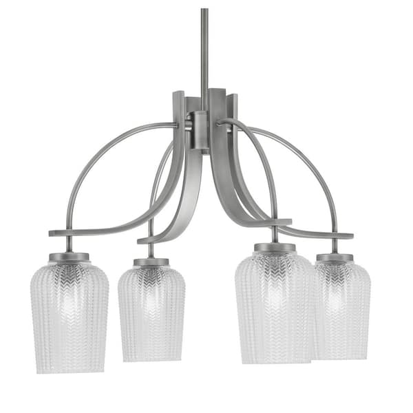 Olympia 16.75 in. 4-Light Graphite Downlight Chandelier Clear Textured Glass Shade