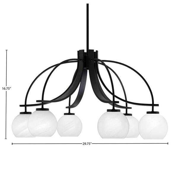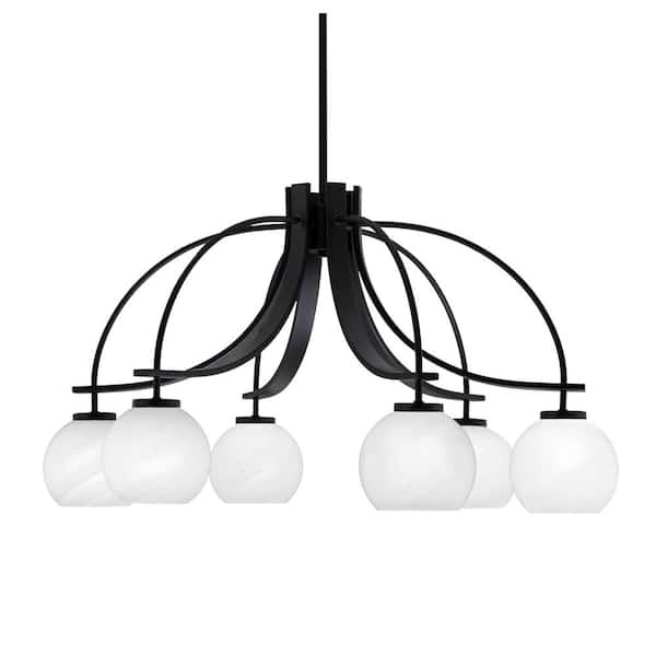 Olympia 16.75 in. 6-Light Matte Black Downlight Chandelier White Marble Glass Shade
