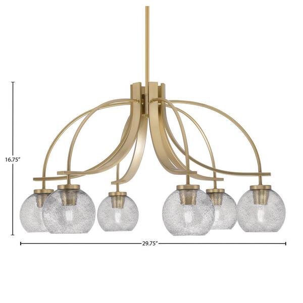 Olympia 16.75 in. 6-Light New Age Brass Downlight Chandelier Smoke Bubble Glass Shade