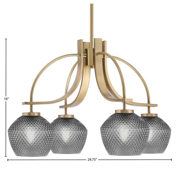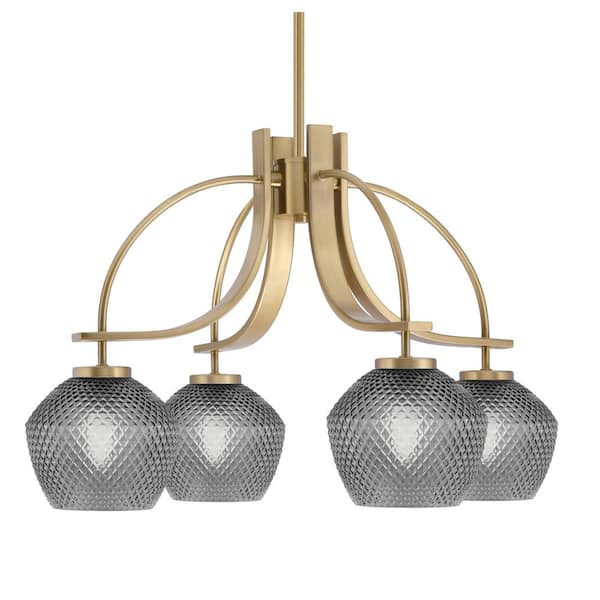 Olympia 16 in. 4-Light New Age Brass Downlight Chandelier Smoke Textured Glass Shade