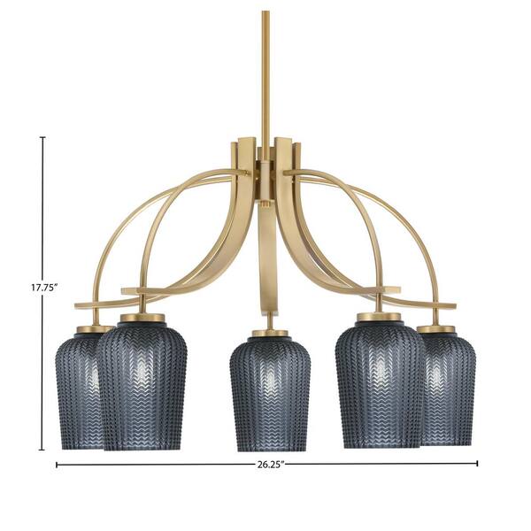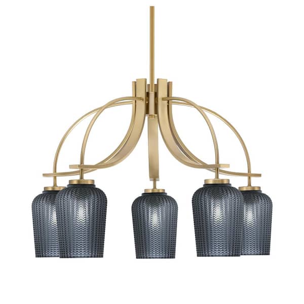 Olympia 17.75 in. 5-Light New Age Brass Downlight Chandelier 5 in. Smoke Textured Glass Shade