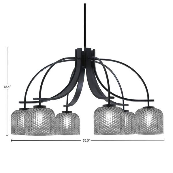 Olympia 18.5 in. 6-Light Matte Black Downlight Chandelier Smoke Textured Glass Shade