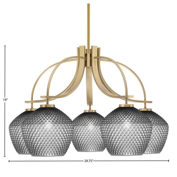 Olympia 19 in. 5-Light Brass Downlight Chandelier Smoke Textured Glass Shade