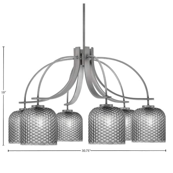 Olympia 19 in. 6-Light Graphite Downlight Chandelier Smoke Textured Glass Shade