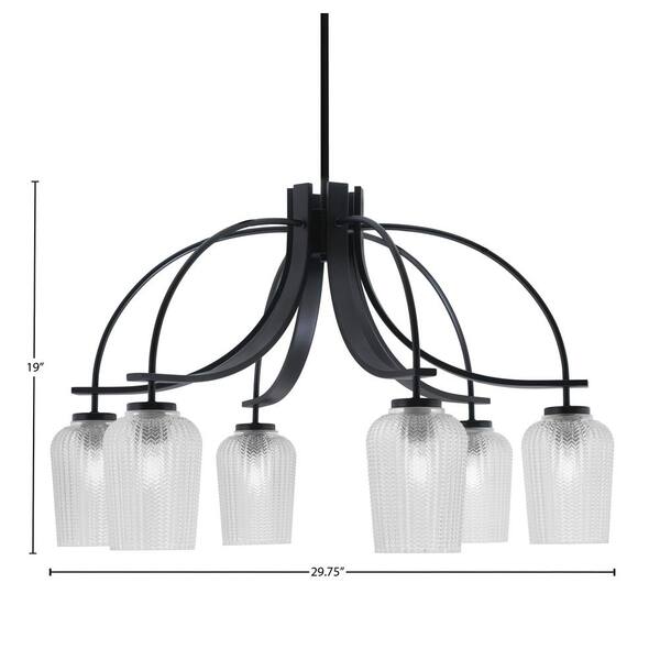 Olympia 19 in. 6-Light Matte Black Downlight Chandelier Clear Textured Glass Shade