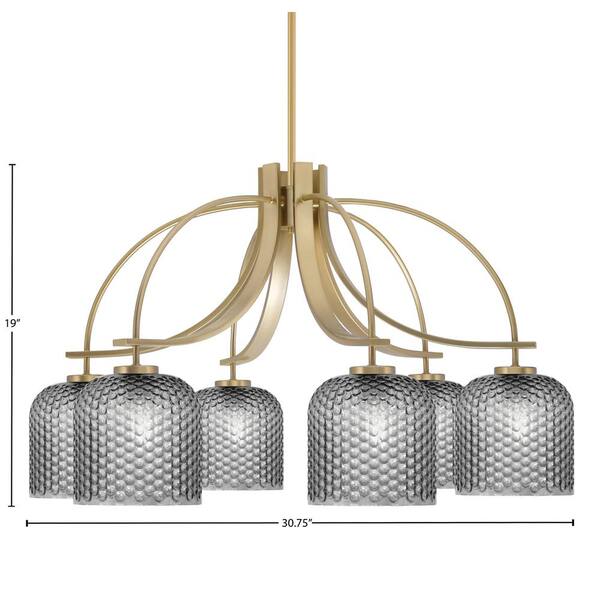 Olympia 19 in. 6-Light New Age Brass Downlight Chandelier Smoke Textured Glass Shade