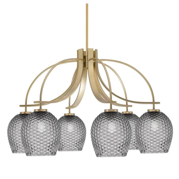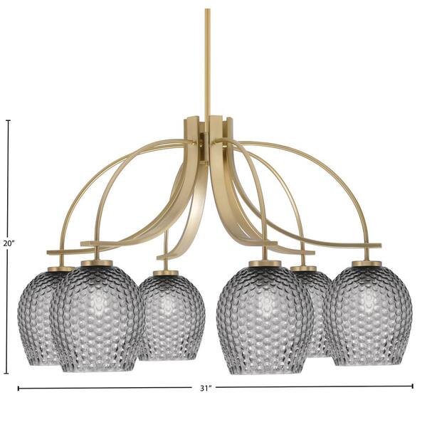 Olympia 20 in. 6-Light New Age Brass Downlight Chandelier Smoke Textured Glass Shade