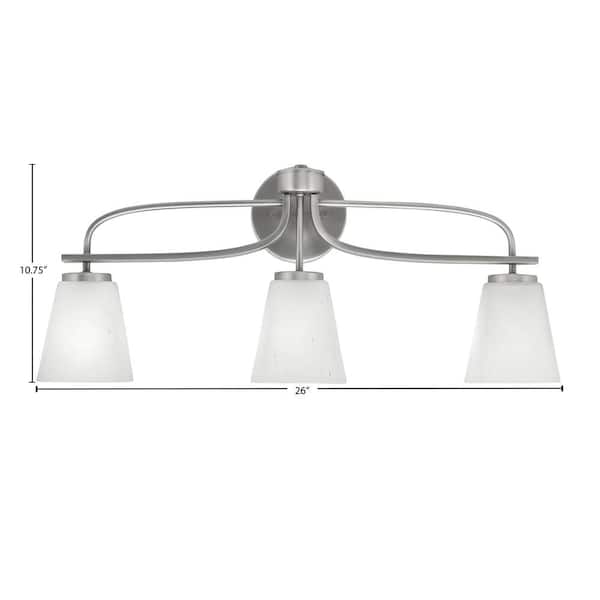 Olympia 26 in. 3-Light Graphite Vanity Light Square White Muslin Glass Shade