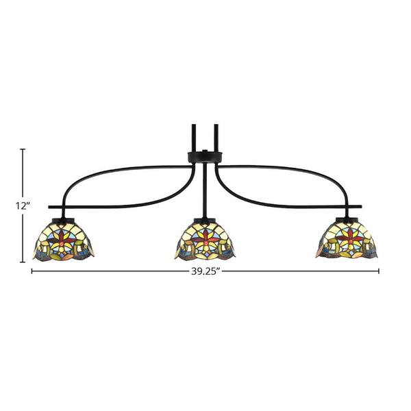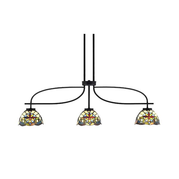 Olympia 3-Light Matte Black Billiard Light with 12 in. Sierra Art Glass Shades, no blulbs included