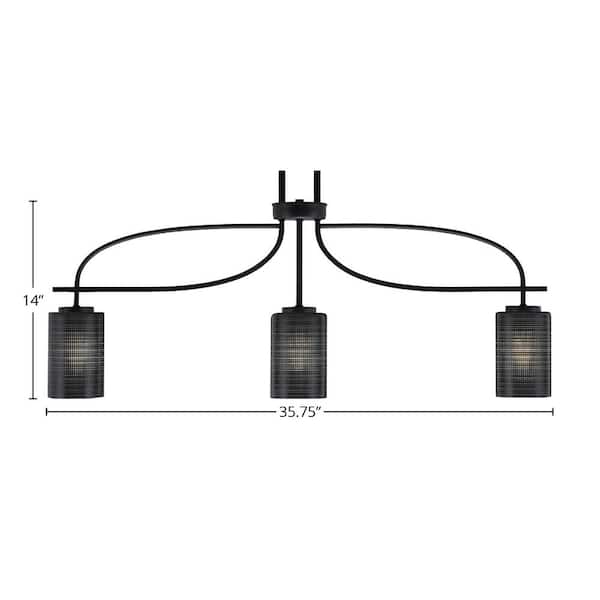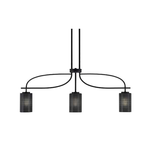Olympia 3-Light Matte Black Billiard Light with 4 in. Black Matrix Glass Shades, no blulbs included
