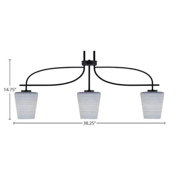 Olympia 3-Light Matte Black Billiard Light with 6 in. Gray Matrix Glass Shades, no blulbs included
