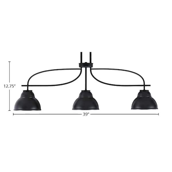 Olympia 3-Light Matte Black Billiard Light with 7 in. Chrome Metal Shades, no blulbs included