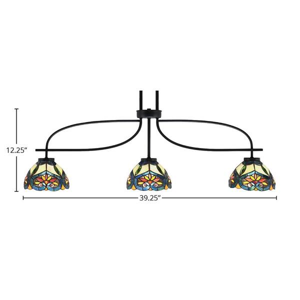 Olympia 3-Light Matte Black Billiard Light with 7 in. Starlight Art Glass Shades, no blulbs included