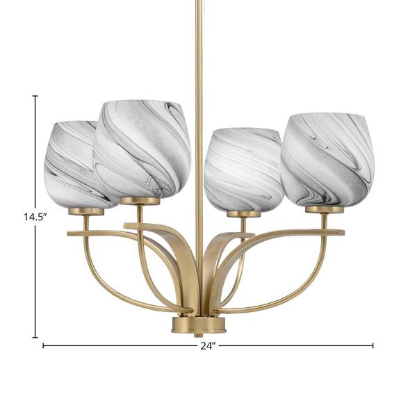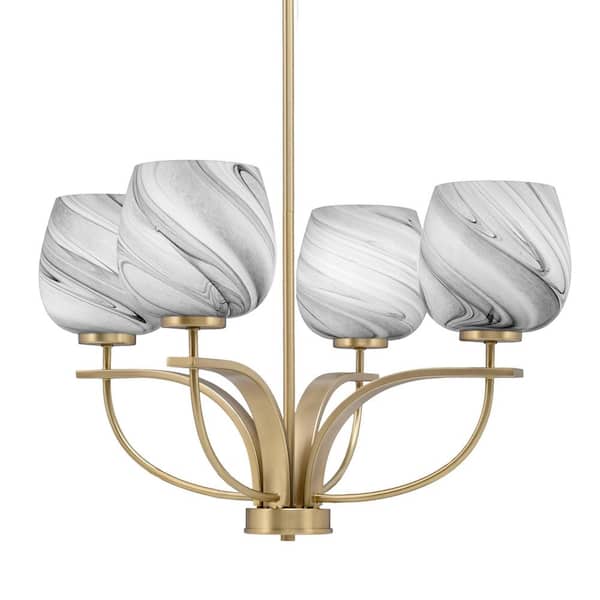 Olympia 4-Light Uplight Chandelier New Age Brass Finish 6 in. Onyx Swirl Glass